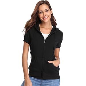 MISS MOLY Damen Kurzarm Kapuzenpullover Sweatjacke Hoodie Sweatshirt mit Reissverschluss