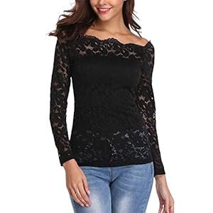 MISS MOLY Damen Spitze Bluse Schulterfrei Langarmshirt Oberteile Tops