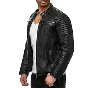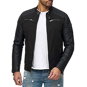 Indicode Herren Manuel Lederjacke aus Leder-Imitat | Motorradjacke Bikerjacke für Männer