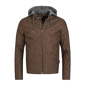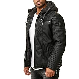Indicode Herren Aaron Lederjacke mit Abnehmbarer Kapuze | Kunstlederjacke Übergangsjacke