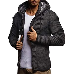 Leif Nelson Herren Strickjacke mit Kaputze Stylischer Hoodie Elegante Freizeitjacke Männer Jacke Slim Fit LN5605