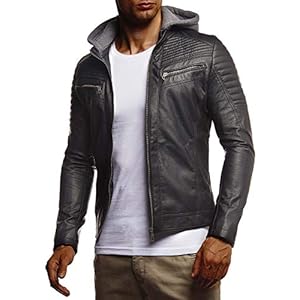 Lederjacke mit abnehmbarer Kapuze Bikerjacke Herren Kunstleder