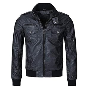 Herren Jacke Lederjacke Kunstleder Biker Übergangsjacke