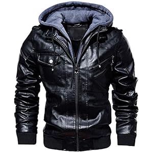 Herren PU Lederjacke Motorrad Biker Jacke Winter Warm Kapuze Lederjacke Men’s Hooded Leather Jacket