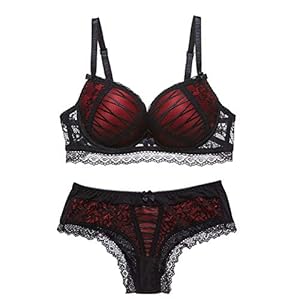 Vertvie Damen-Unterwäscheset, 2-teilig, Spitze, Stickerei, BH, BH, gepolstert, Push-Up + Slip