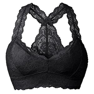 YIANNA Damen Spitzen BH Ohne Buegel Bustier Racerback Lace Bralette mit Abnehmbare Gepolstert