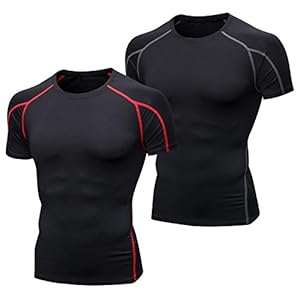 Niksa Funktionsshirt Herren Kurzarm 2 Stück Kompressionsshirt Männer Laufshirt Sportshirt mit Rundhalsausschnitt Fitness