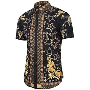 PIZOFF Herren Kurz Arm golden Barock Print Hemden