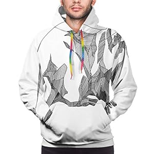 Men’s Hoodies Sweatshirts,Sketch Style Bird Monochrome Peafowl Feathers Tattoo Design Animal Head Portrait