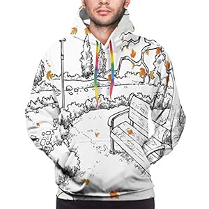 Men’s Hoodies Sweatshirts,Single Waterfall In Corner of The Deep Forest with Fair Fall Oak Trees