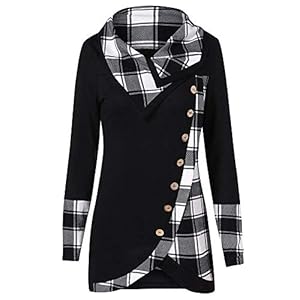 YWLINK Mode Frauen Pullover Freizeit Seitliche Tasten Plaid Patchwork O Kragen Asymmetrie Lange Tunika Damen T Shirt…