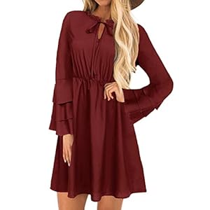YOINS Sommerkleid Damen Minikleid für Damen Brautkleid Glockenärmel Tshirt Kleid Rundhals Langarm Minikleid Strandkleid…