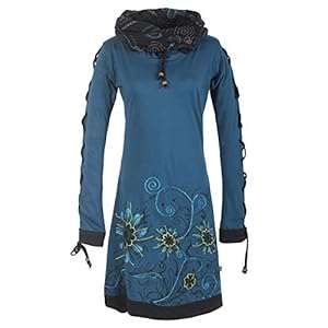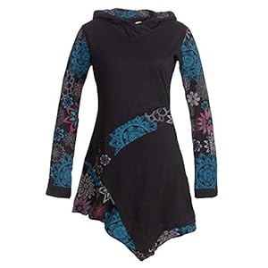 Vishes – Alternative Bekleidung – Asymmetrisches Langarm Damen Baumwoll Blumen-Kleid Hoodie mit Kapuze