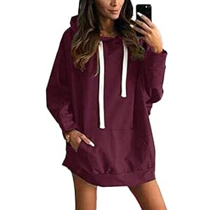 YOINS Sweatshirt Damen Langer Kapuzenpullover Langarm Hoodie Pullover mit Tasche Pulli Kleider Strickjacke Lange Tops…