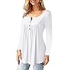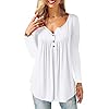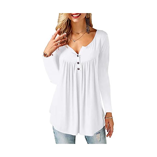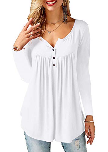 Amoretu T-Shirt Damen V-Ausschnitt Knopfleiste Bluse Solide Tunika Langarm/Kurzarm Tops