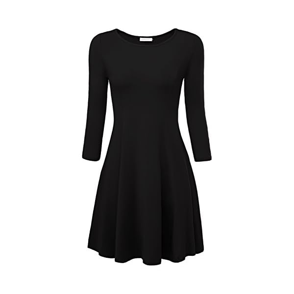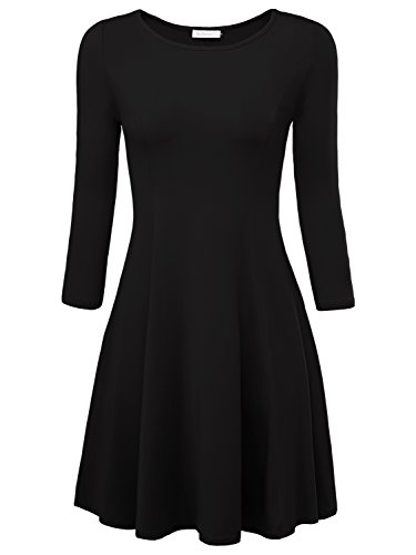 *Damen flatterndes Kleid Slim In Form Rundhals Skater Kleid 3/4 Armel Festakt Top
