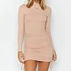 Schreibe die erste Bewertung für „Bienwwow Damen Kleider Gerippte Langarm Kordelzug Mini Geraffte Bodycon Kleider“