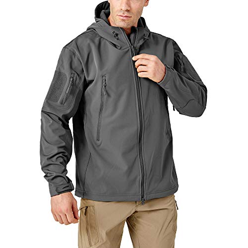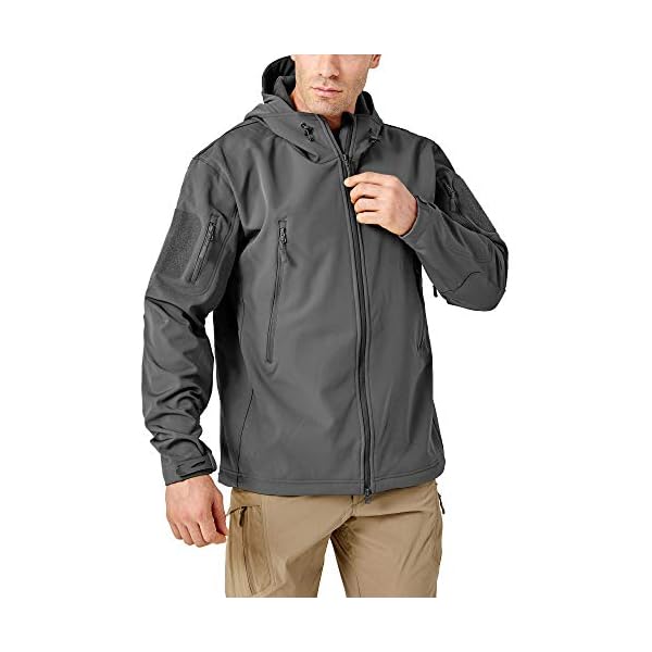 Stilvolles Design: Multifunktionale Softshell-taktische Jacke mit Kapuze. Verstellbarer, elastischer Klettverschluss und verstellbare Handgelenkmanschetten, um Ihre Bedürfnisse zu verriegeln. Unterarm-Belüftungsreißverschluss, lässt Sie besser belüftet und atmungsaktiv sein. Zwei Arm-Patch-Einsätze, Sie können das Plakette Entscheidung, das Sie mögen.