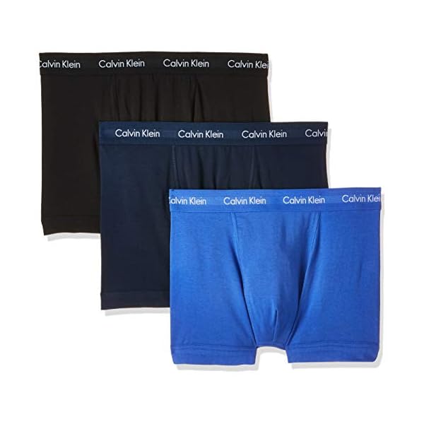 Komfortable CALVIN KLEIN Hüftshorts (Low Rise) für Männer im Dreier-Set in Schwarz, Dunkelblau und Hellblau und Größe XS mit niedriger Taille die Gesamtheit weichem Baumwoll-Mix überzeugen mit klassischem Design und bequemen Schnitt