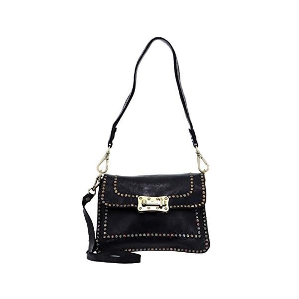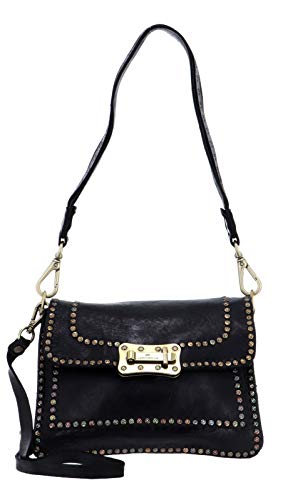 In Italien ganz echtem Rindsleder in Handarbeit hergestellt, ist der Campomaggi Crossbody-Beuteleine luxuriöse Erwerb mit einem praktischen und stilvollen Design. Diese schöne Ledertasche hat einen Faltverschluss mit einem Metallverschluss und lässt sich anfangen, um vier Fächer sowie eine innere Reißverschlusstasche stattdessen die Aufbewahrung Ihrer wichtigsten Dinge freizulegen. Um ein vielseitiges Styling zu ermöglichen, verfügt die Tasche dennoch über zwei abnehmbare Riemen unterschiedlicher Länge, so dass Sie sie wie Handtasche oder am ganzen Körper stützen können. Goldfarbene Nieten und gebrandete Details Acht geben einen abordnen Schluss.