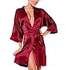 Dkaren 90 Luxus-Morgenmantel, Satin, Kimono, Nachtwäsche