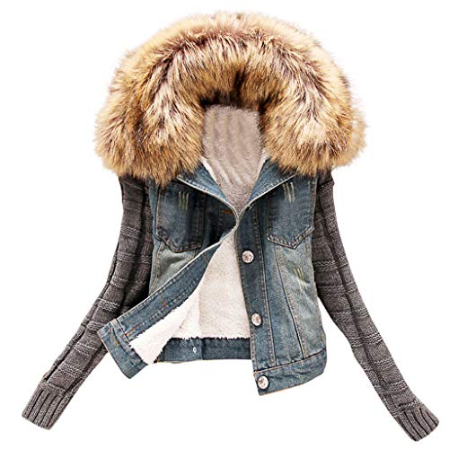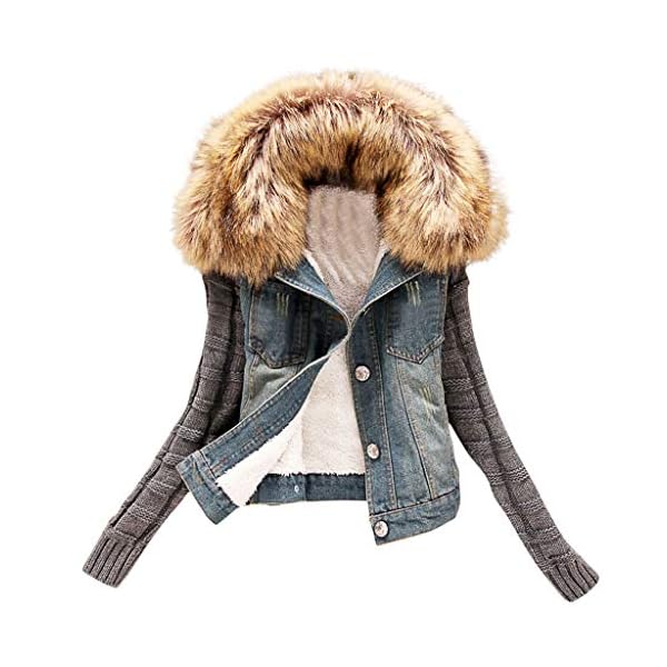 ❤【Eigenschaften 】:Damen Jeansjacke ist nicht demgegenüber super schick, sondern der Winterjacke kann bekannt als im Winter Wärme bringen