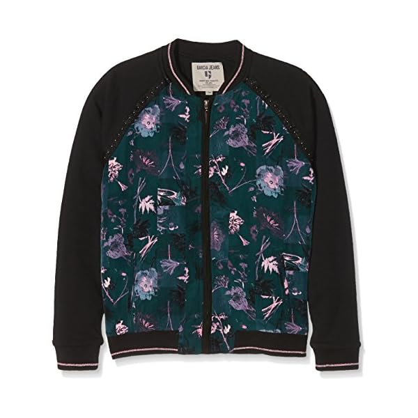 Wunderschöne Materialmix-Sweatjacke im Bomberjackenstil. Anhand herumtoben Nietenapplikationen vorn.