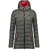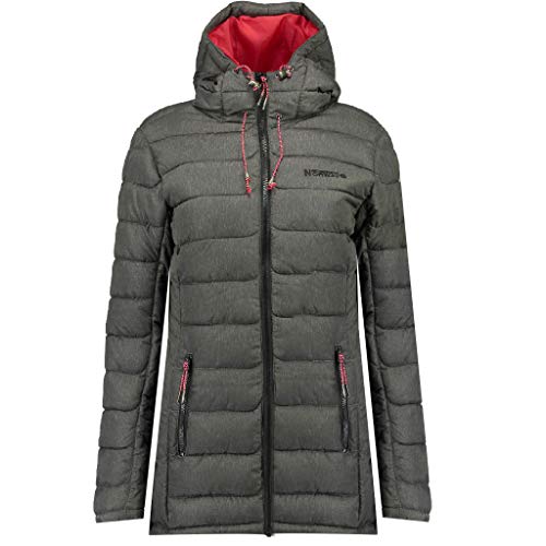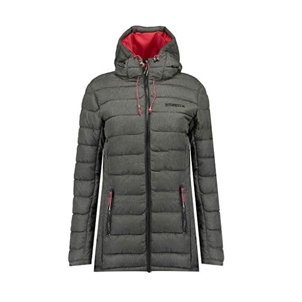 Details: Kapuze (nicht abnehmbar) durch Schnürung, Verschluss hinsichtlich Frontzipper, praktische Taschen innen auch außen, meliert