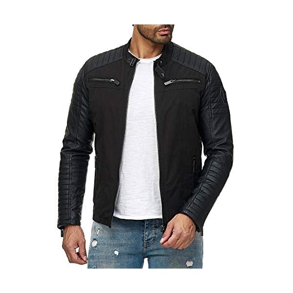 Gefütterte Herren Bikerjacke | Übergangsjacke | Steppjacke unter Einsatz von Kunstlederärmeln im coolen Bikerlook der Bon Redbridge