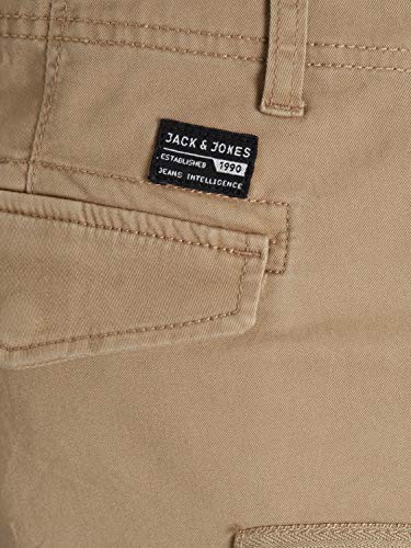 Jack & Jones Junior Blagen Cargo-Shorts Bermuda statt Jungen allesamt elastischer BaumwolleBund mithilfe Gürtelschlaufenim Zusammenschluss ist ein mithilfe Knöpfen verstellbarer Gummizug zur Adaption der Weitemehrere Taschen angeordnet im CargostyleJack & Jones Aufdruck achtern Passform regular – normale Bundweite Muster JJICHOP JJCARGO SHORTS AKM 429 SOLID JR Material 98 % Baumwolle2 % Elasthan Farben olive night – grünkelb – beige