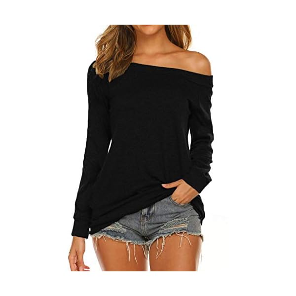 Schulterfreies Oberteil: Stretchmaterial, breiter Bootsausschnitt und Gebänderter unterer Saum design, schräge Schulternähte und lockerer Stil sehen nach eine weibliche Weiblichkeit.