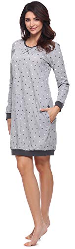 Damen Nachthemd; Qua zwei Taschen; Seit langem Ärmel verarbeitet Qua bequemem Abschlussbund; Rundes Kerbe