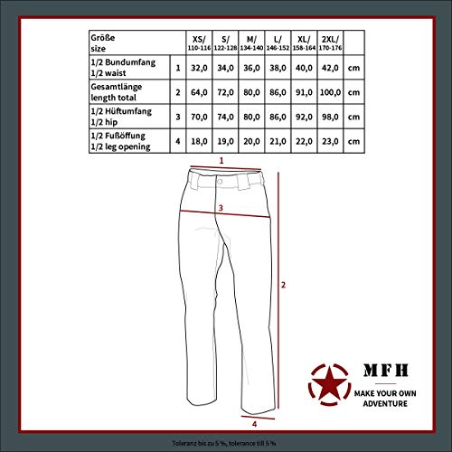 6 Taschen: 2 seitliche Einschubtaschen – 2 Gesäßtaschen unter Einsatz von Patte und Knopf – an der Seite aufgesetzte Beintaschen unter Einsatz von Patte und Knopf
