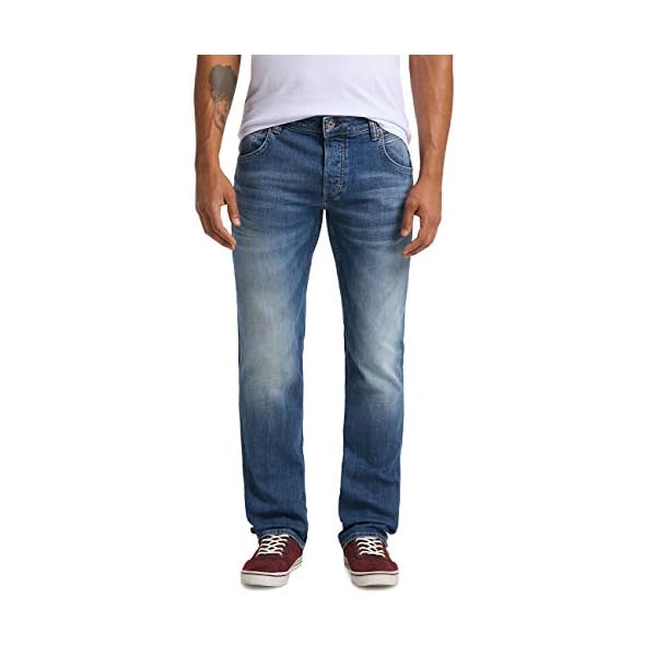 Mit diesen Michigan Straight Jeans von MUSTANG holst Du Dir einen Generalist in Deine Freizeitkollektion. Qua der fortschrittlich Schnitt ist komfortabel und passt gleichzeitig wunderbar zu Outfits mit derben Boots. Stattdessen den angesagten Look sorgt das strukturierte, verwaschene Baumwolldenim mit Tragefalten-Effekt, welches in Anbetracht kontrastfarbene Nähte entsprechend akzentuiert wird. Sie präparieren die Hose noch lässiger.