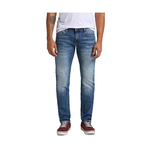 Schmal geschnittene 5-Pocket-Jeans qua gemäßigter Leibhöhe ferner schmalem Beinverlauf in einer positiv darstellen modischen used Waschung.