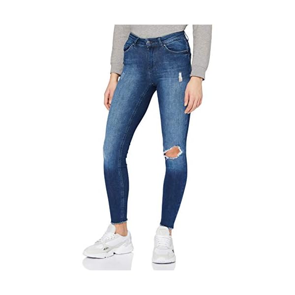 Only Damen-Jeans in schöner Slim Fit Passform, destroyed darüber hinaus via Stretch Teilzahlung. Used Effekte auf dem Oberschenkel geben der Jeans ein WOW Effekt.