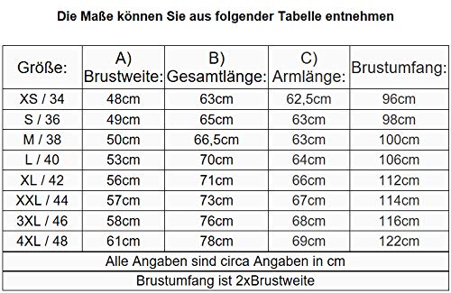 Verstellbare Daumenschlaufen am Armabschluss / Durchgehender Reißverschluss / Ideal für nicht mehr da arten von Freizeit und Outdoor Aktivitäten / Gummi-Logo Patch am Oberarm / In sechs verschiedenen Größe von S bis XXXXL / Entspricht den Größenangaben – bitte Maßtabelle würdigen