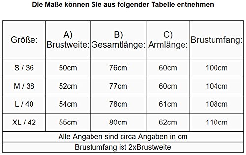 HINWEIS: Maße des Mantels bitte würdigen – die Maße können Sie sämtliche der Maßtabelle hinab entnehmen