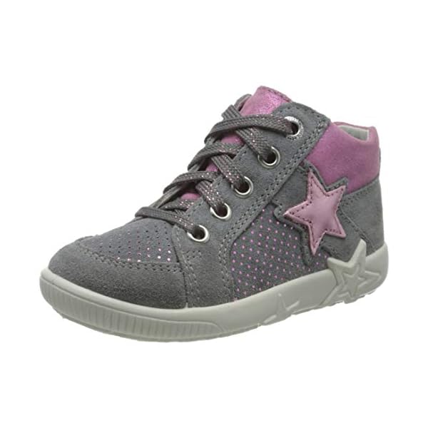 Dieser süße Lauflernschuh für Mädchen der Marke superfit besticht besonders durch sein einzigartiges Design kombiniert mit der bewährten superfit-Passform. Ausgestattet mit einer anatomisch geformten Schnürung, kann der Lauflernschuh sehr weit geöffnet sowie individuell an den Kinderfuß aufeinander abgestimmt werden. Die Laufsohle ist super anpassbar und stellt mit ihrem Sternchen-Design ein zentrales Designelement dar. Dieses Modell besteht aus einer hochwertigen Leder-Kombination und wird in der WMS-Weite M III gefertigt. Das weiche Lederfutter und die herausnehmbare Leder-Einlegesohle sorgen zusätzlich für höchsten Tragekomfort. STARLIGHT vereint trendiges Design mit einem Höchstmaß an Bequemlichkeit.
