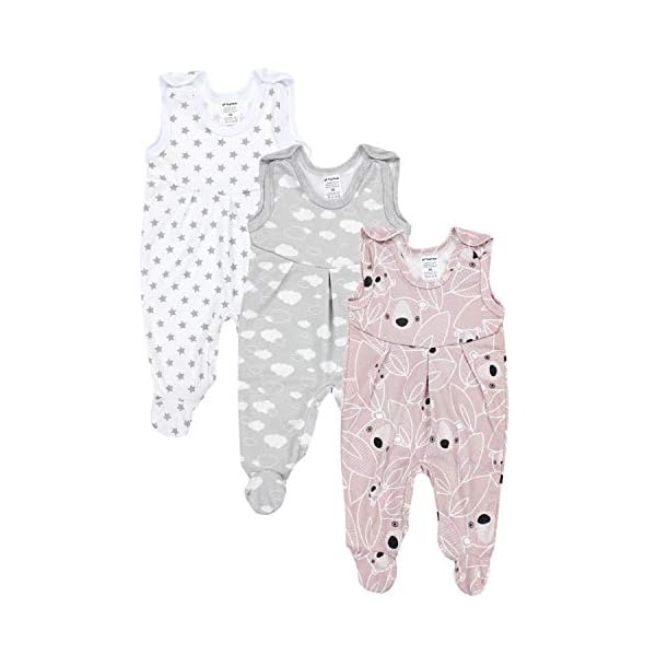 Jedes Set besteht aus 3 Strampler mit wunderschönen Muster wie Sternchen, Wolken, Streifen und Bärchen.