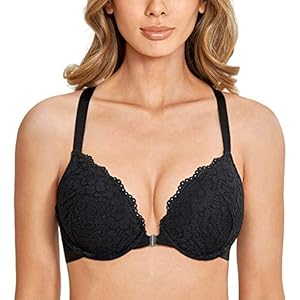 DOBREVA BH Damen mit Bügel Push Up Spitzen Vorderverschluss Gepolstert